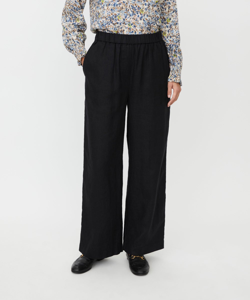 Väljät pellavahousut on ehdottomasti kesän lempivaate. Leveälahkeiset pellavahousut ovat trendikkäät ja ihanan vilpoisat kesähelteellä. Parino-housuissa on kuminauhavyötärö, joka tekee niistä mukavat, helpot ja istuvat. Pellavahousuissa on taskut sivusaumoissa ja listataskut takana.